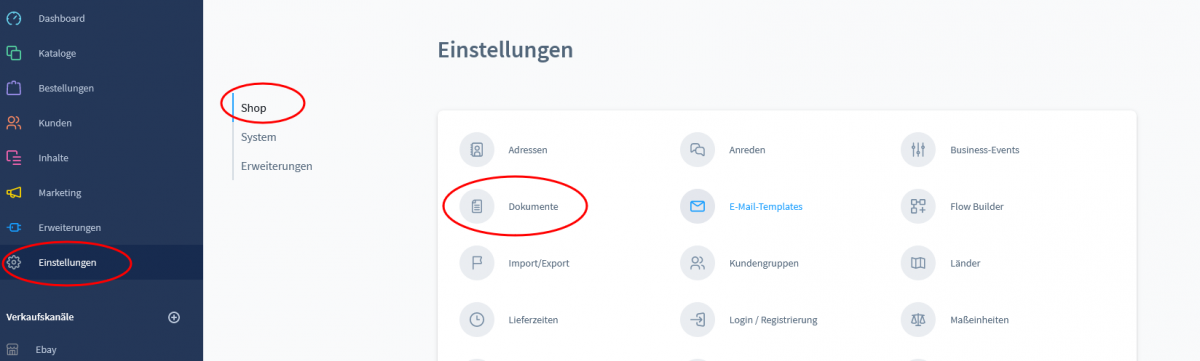 Einstellungen->Shop->Dokumente