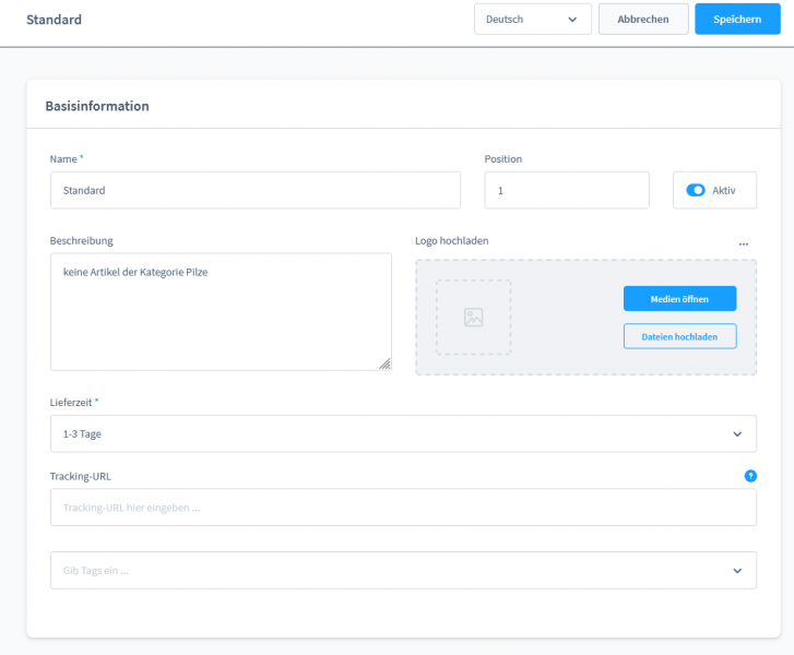 In der Regel selbst kannst du definieren wie die Lieferzeiten für deine Regel sind. Du kannst eine Tracking-Url hinterlegen und eine Verfügbarkeitsregel auswählen, oder neu anlegen. In der Verfügbarkeitsregel legst du fest, unter welchen Bedingungen deine Versandregel zur Verfügung steht. Zum Beispiel nur Deutschland oder für Speditionsversand könnte die Regel hier auf das Gewicht des Warenkorbes zielen.